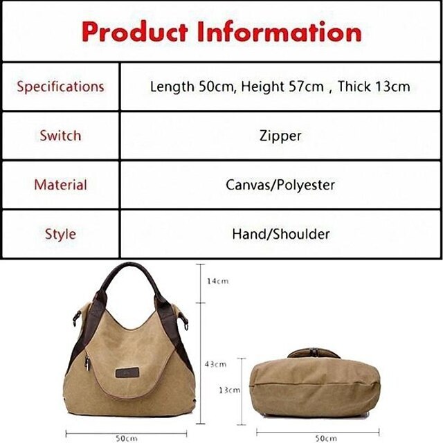 Gender: Men's, Women's, Type: Canvas Tote Bag, Occasion: Daily, Holiday, Embellishment: Zipper, Pattern: Solid Color, Width (cm): 13, Height (cm): 43, Function: Anti-Dust, Durable, Adjustable, Large Capacity, Breathable, Waterproof, Material: Canvas, Category: Shoulder Bag, Handbag, Length (cm): 50,